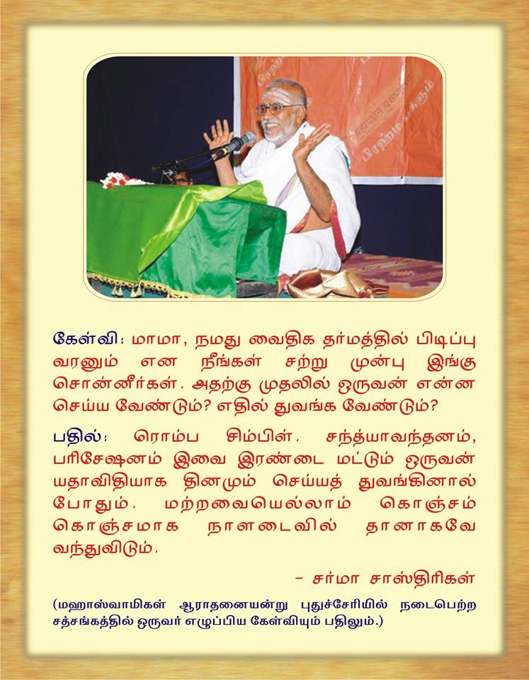 விட்டுப் போன வைதிக விஷயங்களை மீண்டும் ஞாபகப்படுத்தனும், பிரசாரப்படுத்தனும். - காஞ்சி ஆச்சார்யாள்.