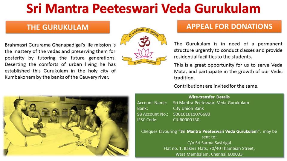 வேத மாதா அனுக்ரஹத்தினால் கும்பகோணம் ஸ்ரீ மந்த்ர பீடேஸ்வரி வேத பாடசாலையின் நூதன விஸ்தாரமான கட்டிட நிர்மாண பணிகள் துவங்கியுள்ளது. ஆஸ்திக மஹாஐனங்களின் ஆதரவோடு லக்ஷியம் நிறைவேறும் என்பதில் சந்தேகமில்லை