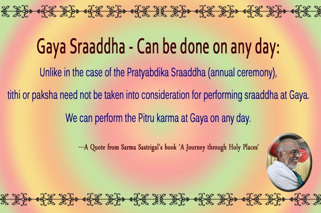 கயாவில் சொல்லும் 'மாத்ரு ஷோடஸீ ' ஸ்லோகங்களும், அர்த்தமும். 64 பிண்டங்களில் அம்மாவிற்கு மட்டும் 16 பிண்டங்களை வைக்கிறோம். இதற்கு “மாத்ரு ஷோடஸி” என்றும் கூறுவர். அப்போது சொல்லப்படும் 16 ஸ்லோகங்களையும், அதன் அர்த்தங்களையும் இங்கு பார்ப்போம்